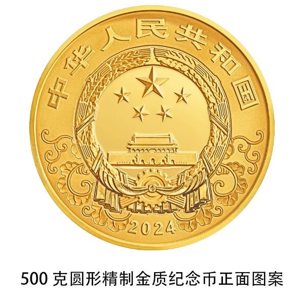 500克圓形金質(zhì)紀(jì)念幣為精制幣,含純金500克,直徑80毫米,面額5000元,成色99.9%,最大發(fā)行量500枚。