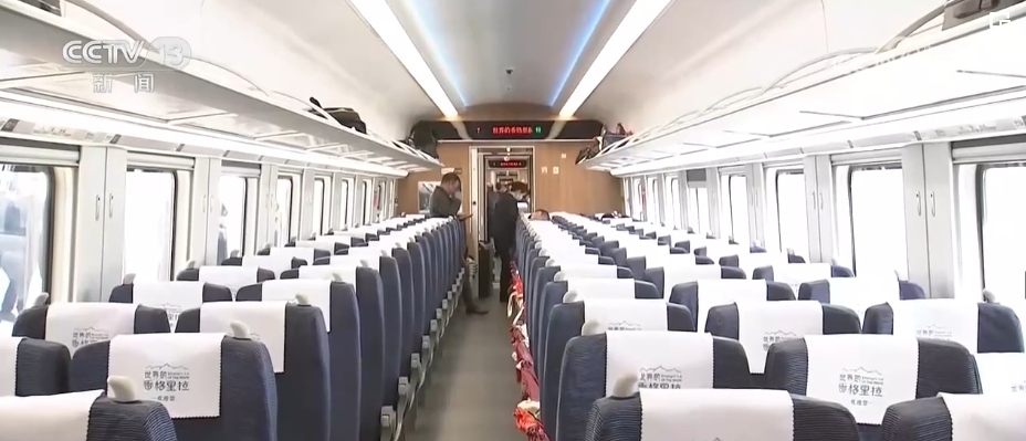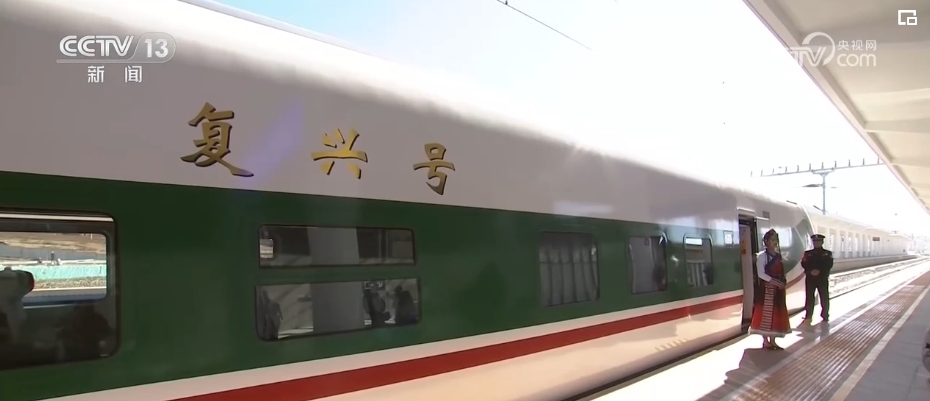 總臺記者 劉文杰:這是一款特別針對滇藏鐵路沿線高原、高寒環(huán)境設(shè)計(jì)的動車組。整列車的涂裝是以“中國紅”為腰帶、以“國槐綠”為窗帶,用“長城灰”進(jìn)行點(diǎn)綴,整體外觀大氣優(yōu)美。