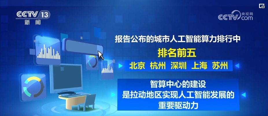 從地區(qū)分布看,《報(bào)告》公布的城市人工智能算力排行中,北京,杭州,深圳、上海、蘇州排名前五,智算中心的建設(shè)是拉動(dòng)地區(qū)實(shí)現(xiàn)人工智能發(fā)展的重要驅(qū)動(dòng)力。