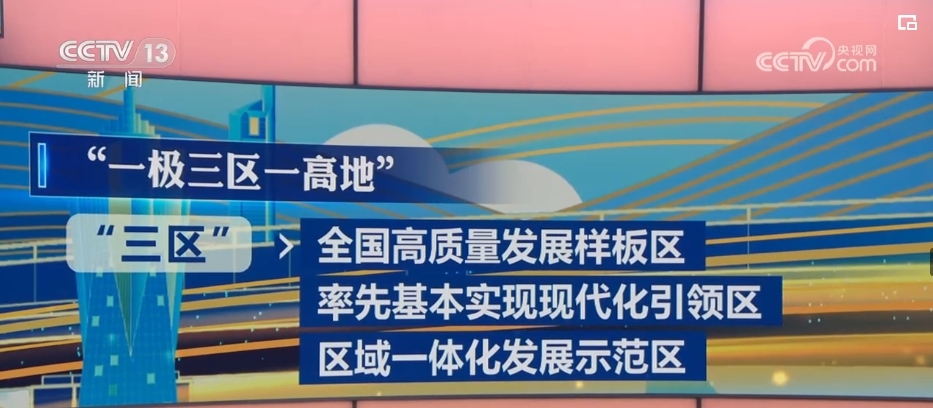 其中,“一極”就是全國發(fā)展強勁活躍增長極,“三區(qū)”指的是全國高質(zhì)量發(fā)展樣板區(qū)、率先基本實現(xiàn)現(xiàn)代化引領區(qū)、區(qū)域一體化發(fā)展示范區(qū),而“一高地”則是指新時代改革開放新高地。
