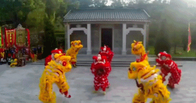 舞動(dòng)的獅子騰起、跳躍、搖頭擺尾