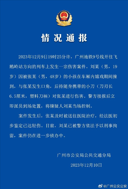 ·警方通報“廣州地鐵9號線持刀傷人事件”,廣州地鐵回應(yīng):涉案刀具不在管制范圍內(nèi)。