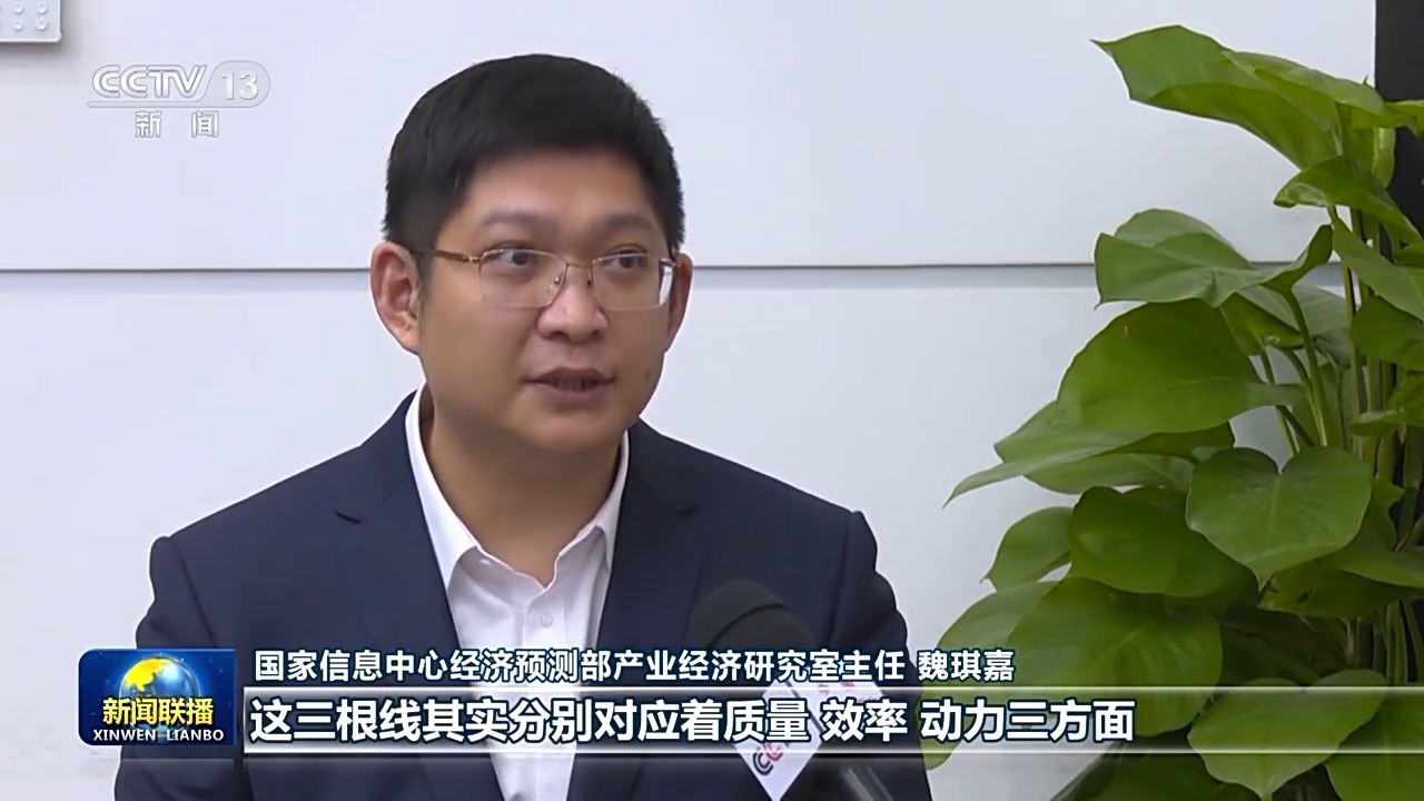 “這三根線分別對應著質量、效率和動力,從不同側面反映了中國經濟質的變化。從它們的走勢上看,都保持了持續(xù)增長。這也表明,質量變革、效率變革、動力變革推動下的中國經濟高質量發(fā)展的步伐更加堅實有力?!?/p>