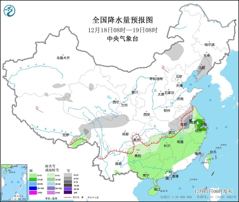 預(yù)計(jì),17日夜間至19日,南方大部地區(qū)有雨雪天氣,江淮地區(qū)將有雨夾雪或雪,江南、華南等地將有小雨,局地中雨。17日至18日,貴州中北部和東部、湖南西部和南部等高海拔地區(qū)有凍雨,其中夜間至凌晨時(shí)段凍雨范圍較大。未來我國(guó)大部低溫持續(xù)偏低,受雨雪天氣疊加影響,外出請(qǐng)注意路面濕滑和交通安全。