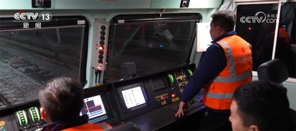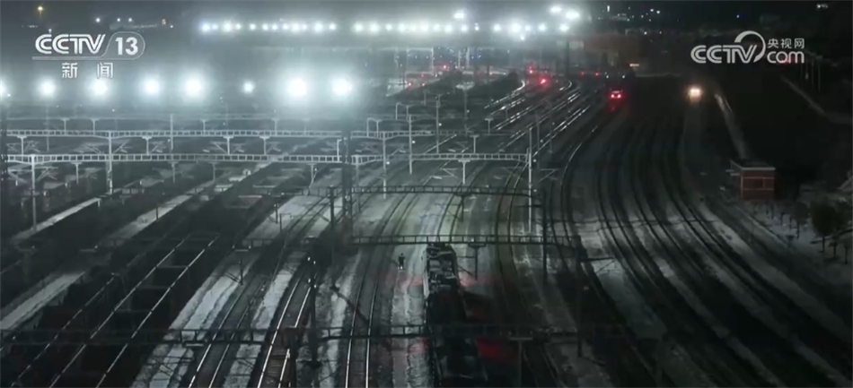 總臺央視記者 張叢婧:我現(xiàn)在是在一列滿載著將近一萬噸煤炭的貨運火車上,正在駛往黃驊港方向。這列車從神東礦區(qū)裝滿煤之后,一路往東,現(xiàn)在到達了它途中的第一個編組站,在這里會進行更換車頭的工作,因為這往后的路會更加崎嶇難走,我們可以看到現(xiàn)在路上是有積雪,所以需要在這換一個更大功率的車頭,才能夠帶得動它身后這一百多節(jié)車廂去走這段更艱難的路?,F(xiàn)在隨著這個車緩緩進站,馬上就要去進行編組任務。