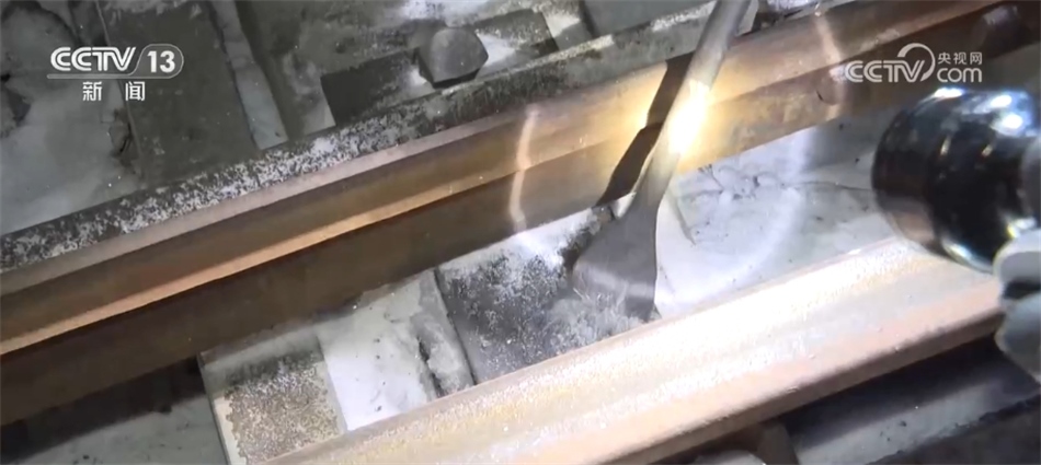 我在車站里看到不僅有給列車編組的司機、調度員,我還看到在鐵路的道岔還有很多工作人員正在做一些積雪清掃還有除冰的工作。我們可以湊近看一下,可以看到道岔這里現(xiàn)在是被凍住了,已經(jīng)沒法推動這個鐵軌,而這的空間又非常小,所以只能靠這樣的小鏟子一點點鏟,才能把這塊兒的積雪和冰給清干凈。