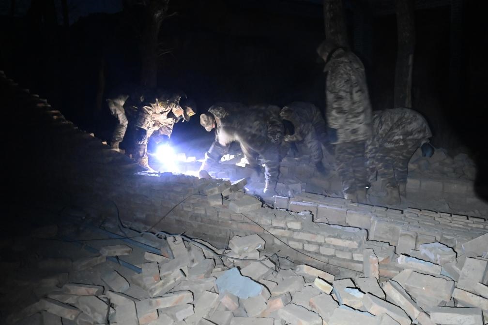 救援人員在清理倒塌的院墻(12月19日攝)。新華社記者 范培珅 攝