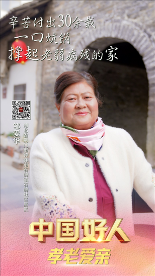 他們,是在湍流之中勇救落水老人的程寶存、程建軍;是孝老愛(ài)親、孝義相隨的張吉蓮;是在一平方米的餅攤上寫(xiě)出人間大愛(ài)的鄒愛(ài)華;是堅(jiān)守在大山里教學(xué)40多年的石武蓀;是46年來(lái)堅(jiān)持上門(mén)送醫(yī)送藥的李志高;是撿到20萬(wàn)元后選擇主動(dòng)報(bào)警的拾荒老人呂學(xué)芹;是主動(dòng)為烈士守墓30多年的趙銀亭;是與家人植樹(shù)造林39載,為2000余畝荒山種植樹(shù)木60余萬(wàn)株的李振海;是用生命寫(xiě)下英雄之歌的鄒鑫;是竭畢生所學(xué)救死扶傷的詹慶元;也是視患者如親人的張穎惠。他們以自己的榜樣力量,鼓舞所有人爭(zhēng)做社會(huì)的好公民、單位的好員工、家庭的好成員,為實(shí)現(xiàn)中華民族偉大復(fù)興奉獻(xiàn)自己的光和熱。
