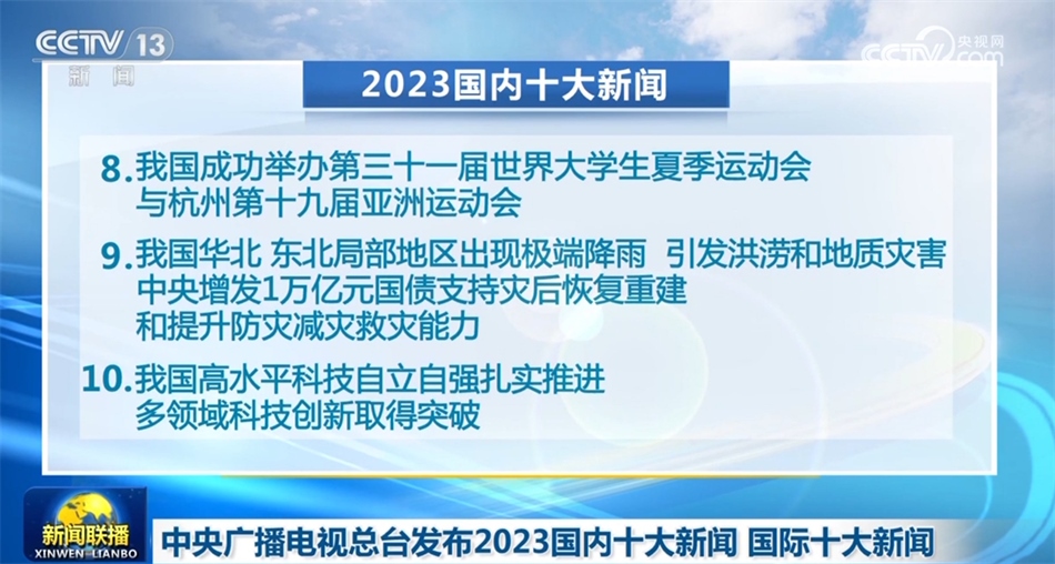 央視網(wǎng)消息(新聞聯(lián)播):中央廣播電視總臺今天(12月27日)發(fā)布2023國內(nèi)十大新聞和國際十大新聞。
