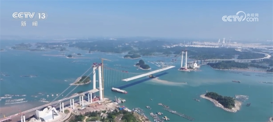 ??????這里是廣西欽州市的龍門大橋,從空中俯瞰,建設(shè)中的龍門大橋宛若一條巨龍橫臥于碧海之上。龍門大橋全長7.6公里,是目前廣西在建的最長跨海大橋。通車后,防城港與欽州港的時空距離由原來的1.5小時縮減至25分鐘左右,助力西部陸海新通道建設(shè)。