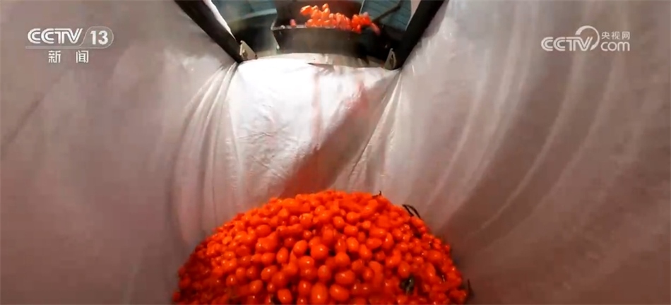 沙棘果送到工廠加工,而被分離出來的枝條也會(huì)被進(jìn)一步利用。
