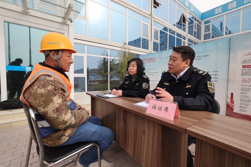 圖為北京市根治拖欠農(nóng)民工工資工作協(xié)調(diào)小組在新國展二期建設(shè)工地進(jìn)行現(xiàn)場接訪。(北京市人社局供圖)