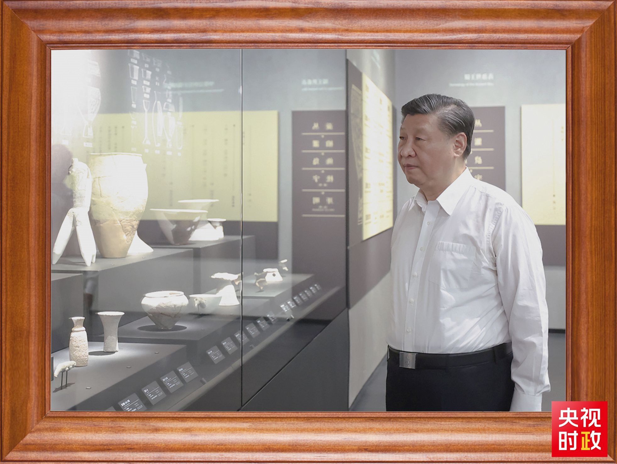 在習(xí)近平總書(shū)記的書(shū)架上,有這么一張照片,記錄著他的文化足跡——2023年7月26日,總書(shū)記來(lái)到位于四川省德陽(yáng)市廣漢市的三星堆博物館新館,了解三星堆遺址發(fā)掘歷程和古蜀文明成果。