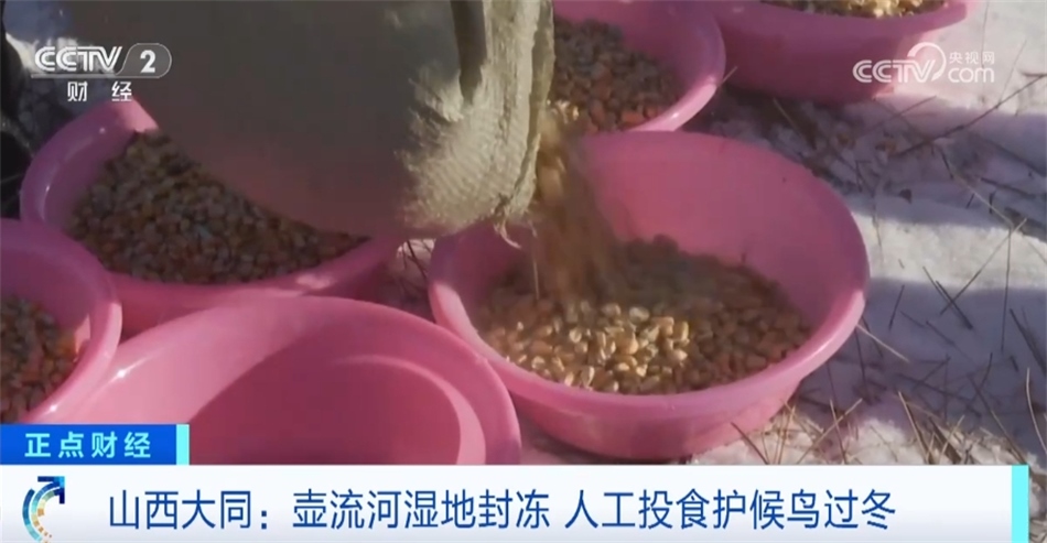 連日來,山西大同氣溫持續(xù)偏低,在廣靈縣壺流河濕地越冬的野生鳥類出現(xiàn)覓食難現(xiàn)象。為保障越冬候鳥食物供給,壺流河濕地保護中心組織開展人工投食工作,為越冬鳥類送去過冬“口糧”。