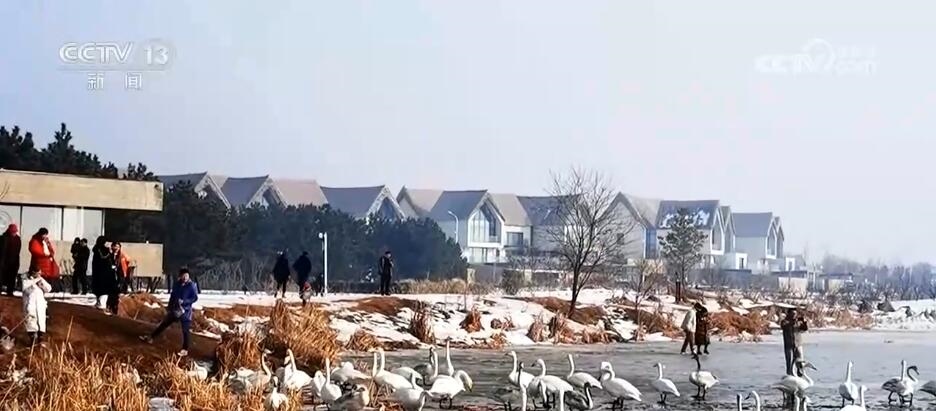 山東榮成:大天鵝雪中嬉戲 警民聯(lián)手守護(hù)生態(tài)美景
