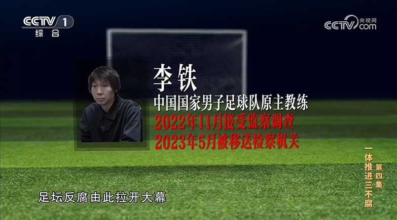 【解說(shuō)詞】李鐵是本次專案第一個(gè)接受監(jiān)察調(diào)查并被留置的人員,事實(shí)證明,這個(gè)切入點(diǎn)的選擇是非常精準(zhǔn)的。他既在多家俱樂部擔(dān)任過(guò)教練,又曾擔(dān)任中國(guó)國(guó)家男子足球隊(duì)主教練,在足球領(lǐng)域關(guān)系盤根錯(cuò)節(jié),以他為突破口縱深挖掘、橫向拓展,牽出了從聯(lián)賽到國(guó)家隊(duì)、從俱樂部到足協(xié)的若干涉嫌違紀(jì)違法犯罪人員,以及種種黑幕和制度漏洞。