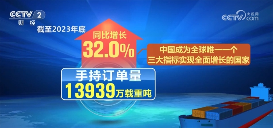 最新數(shù)據(jù)顯示,2023年我國造船完工量4232萬載重噸,同比增長11.8%;新承接訂單量7120萬載重噸,同比增長56.4%;截至2023年底,手持訂單量13939萬載重噸,同比增長32.0%,所有指標第一次實現(xiàn)2位數(shù)增長。