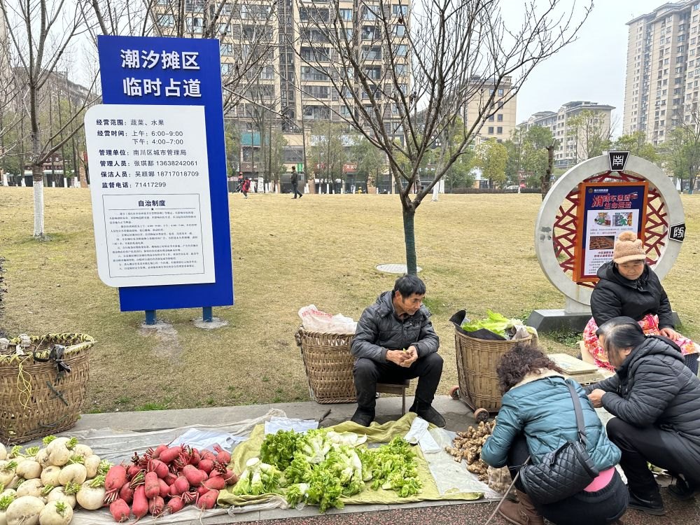 去年4月以來(lái),南川區(qū)探索在小區(qū)周邊等區(qū)域設(shè)立“潮汐攤區(qū)”,目前已設(shè)置攤區(qū)31處、攤位2100余個(gè),引導(dǎo)瓜果農(nóng)、流動(dòng)菜農(nóng)、經(jīng)營(yíng)攤販免費(fèi)入位規(guī)范經(jīng)營(yíng),實(shí)行“攤位+攤主自治”模式,早中晚定時(shí)、規(guī)范定點(diǎn)、統(tǒng)一管理。“這讓居民在家門(mén)口就能吃上新鮮瓜果蔬菜,也有助于規(guī)范流動(dòng)攤販管理。”南川區(qū)城市管理局局長(zhǎng)姚濤說(shuō)。