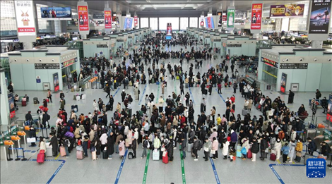 1月28日(春運第3天,農歷臘月十八,全社會跨區(qū)域人員流動量19302.8萬人次,比2023年同期增長17.7%。