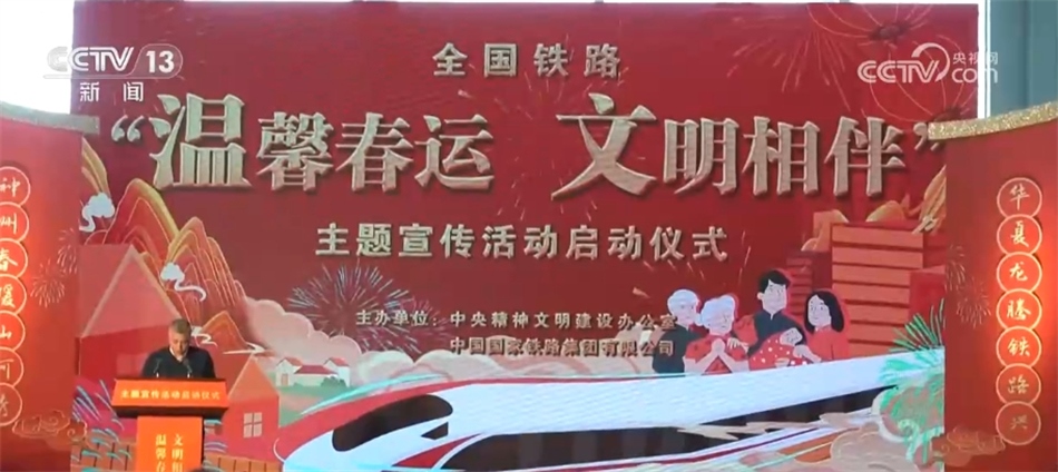 國(guó)鐵集團(tuán)黨組宣傳部副部長(zhǎng) 厲于:春運(yùn)來臨之際,全國(guó)鐵路開展“溫馨春運(yùn)、文明相伴”主題宣傳活動(dòng),發(fā)布鐵路旅客文明出行倡議,就是為了大力倡導(dǎo)互助友愛、文明禮讓的出行新風(fēng)尚,讓不文明行為得到有效抵制,讓旅客在春運(yùn)路上體驗(yàn)更美好。