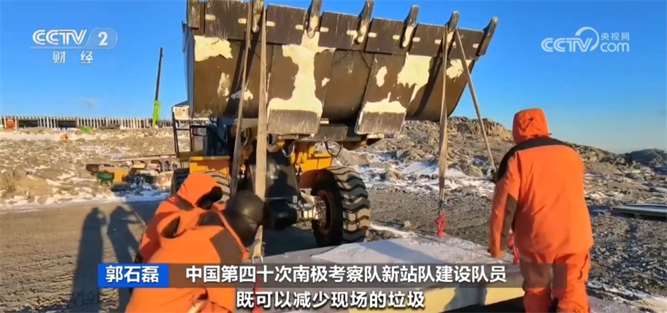 中國第四十次南極考察隊新站隊建設(shè)隊員 郭石磊:我們這個停機(jī)坪采用的是國內(nèi)加工生產(chǎn)、現(xiàn)場拼裝的方式,既可以減少現(xiàn)場的垃圾,也可以讓現(xiàn)場的施工速度大大提升,按計劃,三到五天完成停機(jī)坪的建設(shè)。