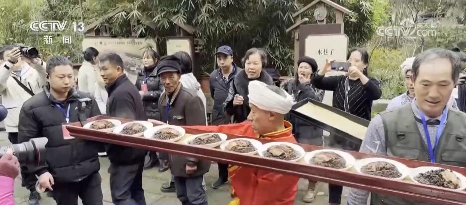 在熱鬧的現(xiàn)場(chǎng),最引人注目的就是“打盆”絕技,這也是川渝地區(qū)獨(dú)有的民俗上菜表演。四層高的蒸籠冒著熱氣,民間藝人將蒸籠里的菜肴放在一個(gè)長(zhǎng)2米、寬20厘米的木托盤(pán)里,將其頂在頭上,不用手扶,傳送到長(zhǎng)桌宴上。