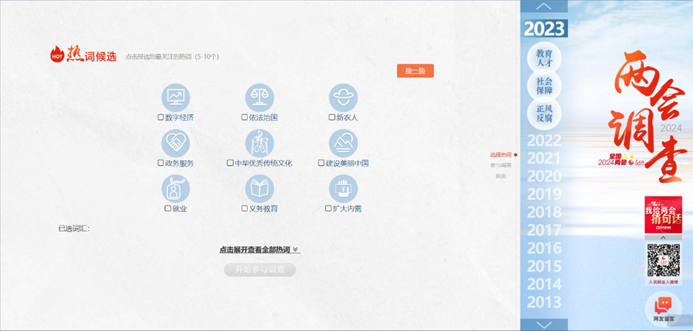 1、登錄人民網(wǎng)2024年全國(guó)兩會(huì)調(diào)查頁(yè)面。