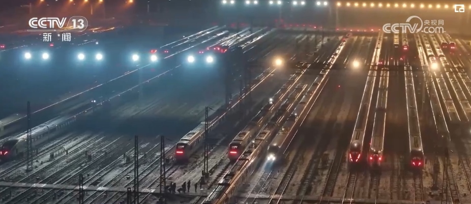 趁著茫茫夜色,動(dòng)車組司機(jī)張洋從動(dòng)車所出勤,執(zhí)行當(dāng)天高鐵第一列“熱滑除冰車”的執(zhí)勤任務(wù)。