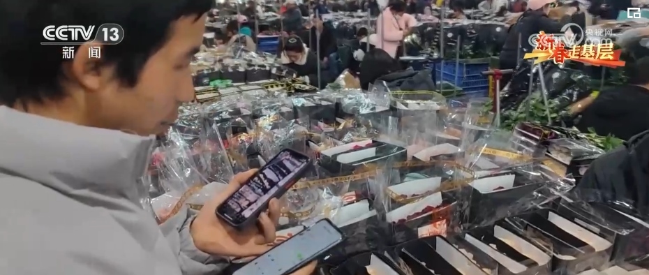 跟往年相比,一邊手機直播,一邊驗花帶貨,也成為一種流行的銷售新模式。