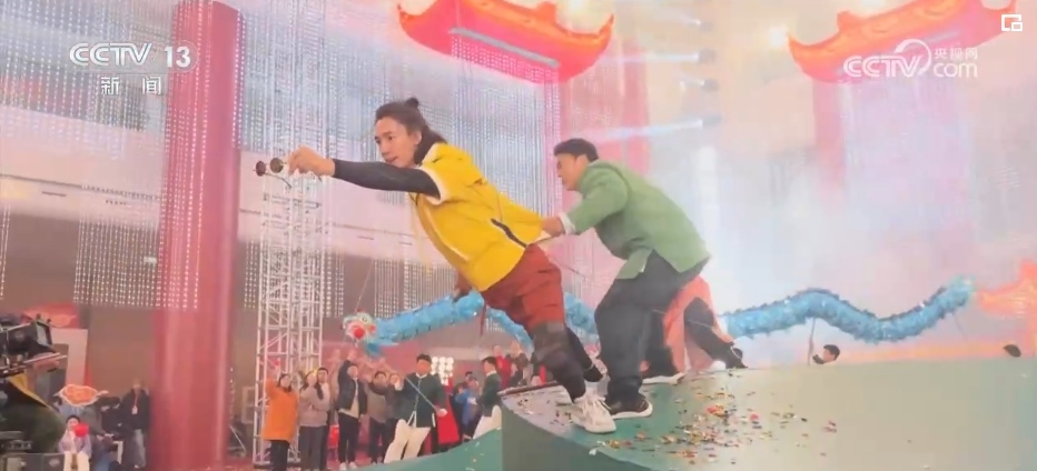 央視網(wǎng)消息:中央廣播電視總臺《2024年春節(jié)聯(lián)歡晚會》武術節(jié)目《爭春》由袁和平作為監(jiān)制,樊少皇、吳樾、此沙三位演員與塔溝武校的學員們,分為三支舞龍隊比拼武藝、以武爭春。節(jié)目中再現(xiàn)經(jīng)典武術招式,同時融入了更多生活化的情節(jié),一招一式剛柔并濟,盡顯春日里萬物競發(fā)勃勃生機。