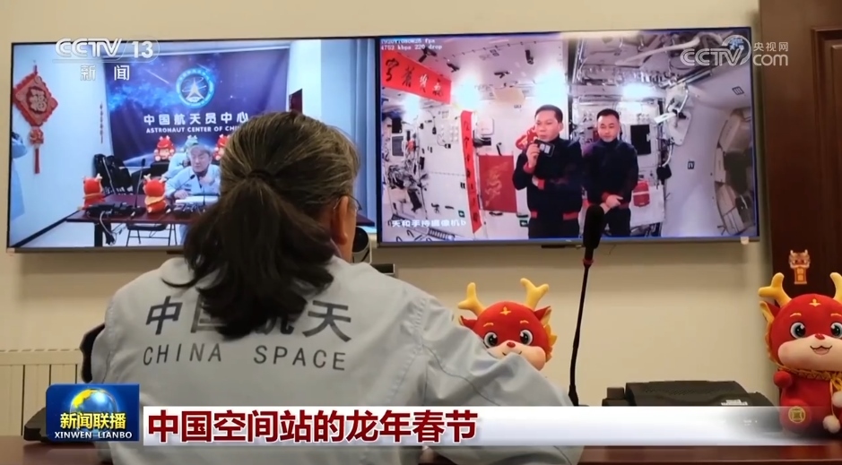 央視網(wǎng)消息(新聞聯(lián)播):龍騰九州、春暖人間,在距離地球約400公里的中國(guó)空間站,正在“太空出差”的神舟十七號(hào)航天員乘組日程過半,3名航天員在“太空家園”里歡樂過年。