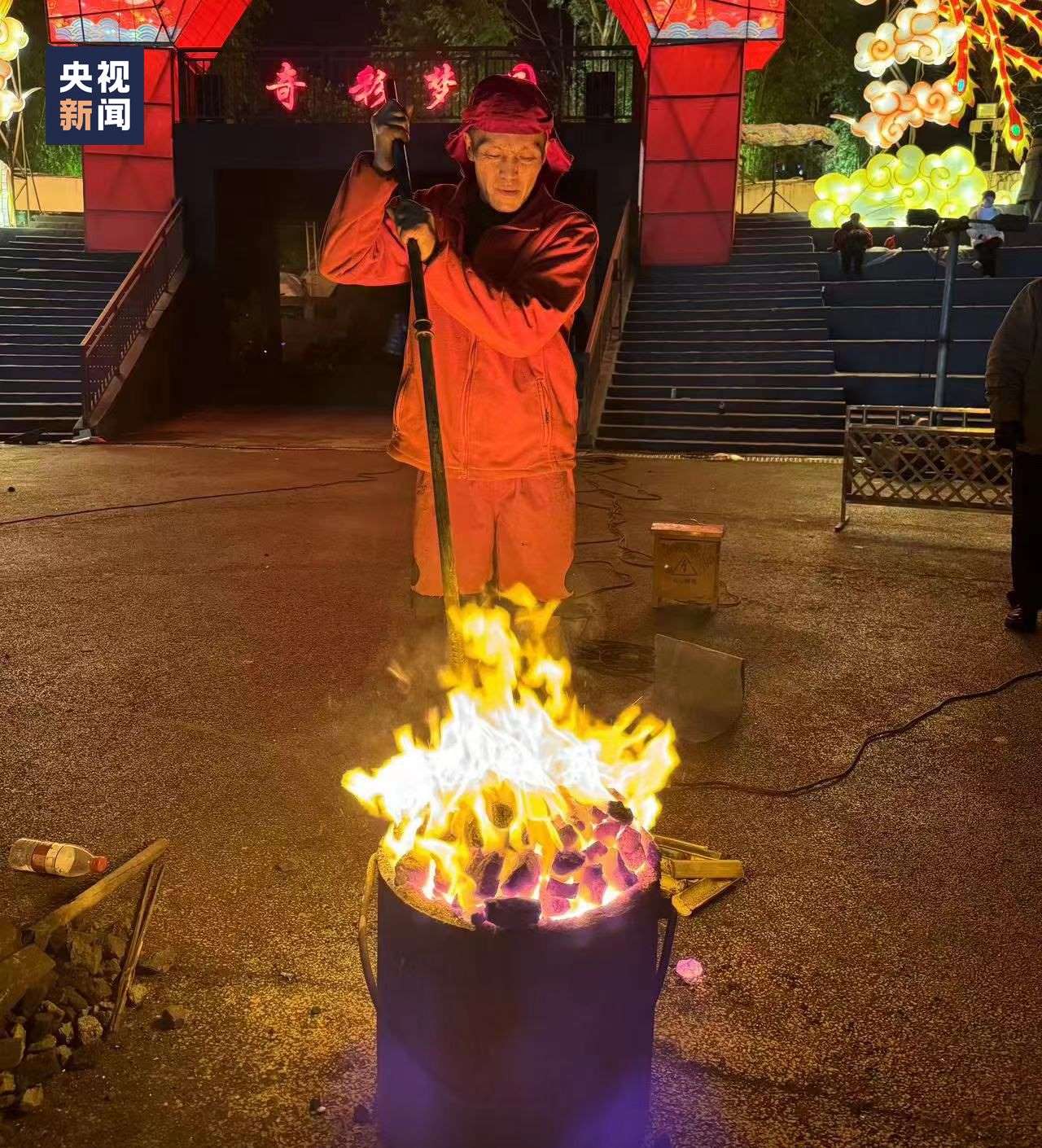 “鐵水拋得越高越直,形成的鐵花就會(huì)越散,越不容易傷到人?!?/p>