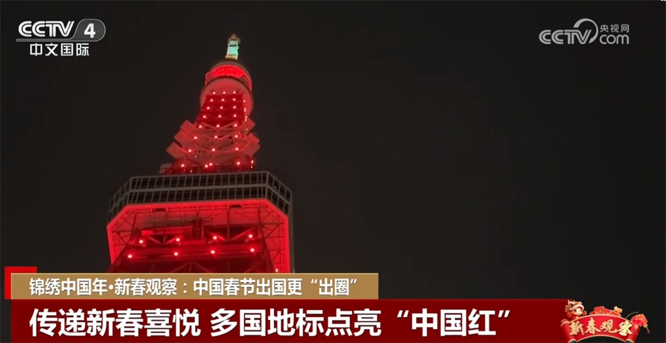 為歡慶春節(jié),多國(guó)地標(biāo)建筑都點(diǎn)亮了“中國(guó)紅”。英國(guó)倫敦的巨型摩天輪“倫敦眼”亮起紅色和金色燈光,象征幸福吉祥;在日本東京,東京塔換上一身紅裝,為龍年送上祝福;加拿大最大城市多倫多市的地標(biāo)建筑加拿大國(guó)家電視塔也在落日一個(gè)小時(shí)后開(kāi)始“亮紅”,迎接龍年新春的到來(lái)。