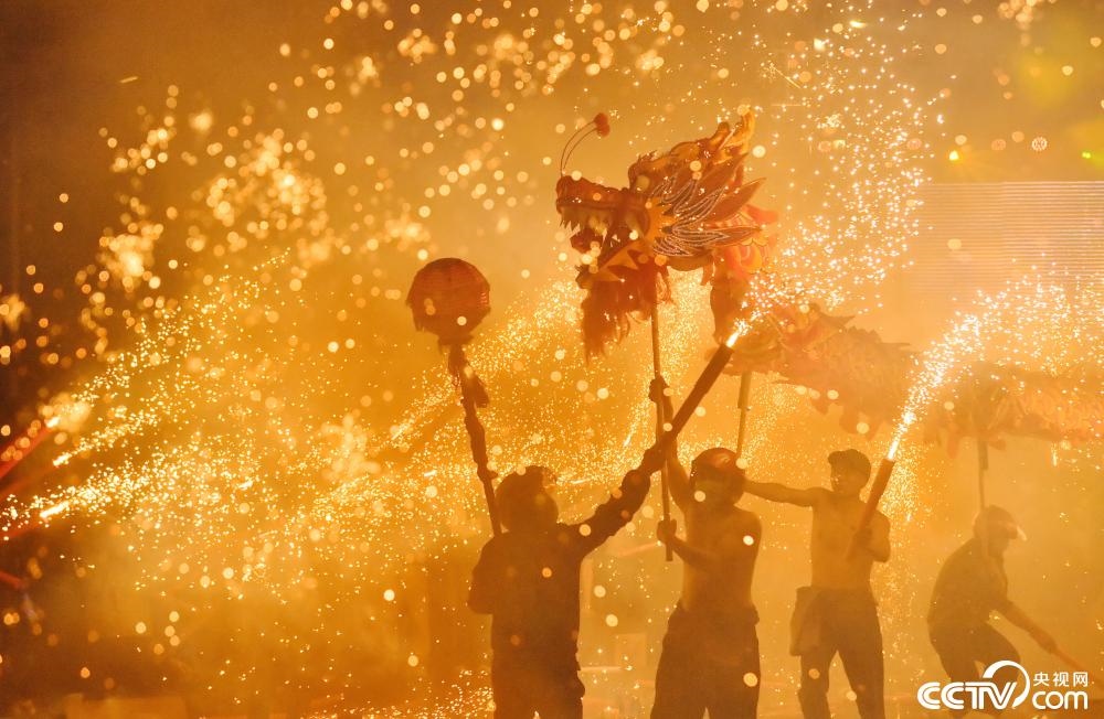 2024年2月14日,貴州省銅仁市印江土家族苗族自治縣新寨鎮(zhèn)凱望村舉行舞龍噓花賀新春活動。鑼鼓喧天,土家族村民揮舞著4條彩色長龍?jiān)趪u花中穿梭舞動,向村民們拜年共賀新春,呈現(xiàn)出熱鬧喜慶的節(jié)日氣氛。