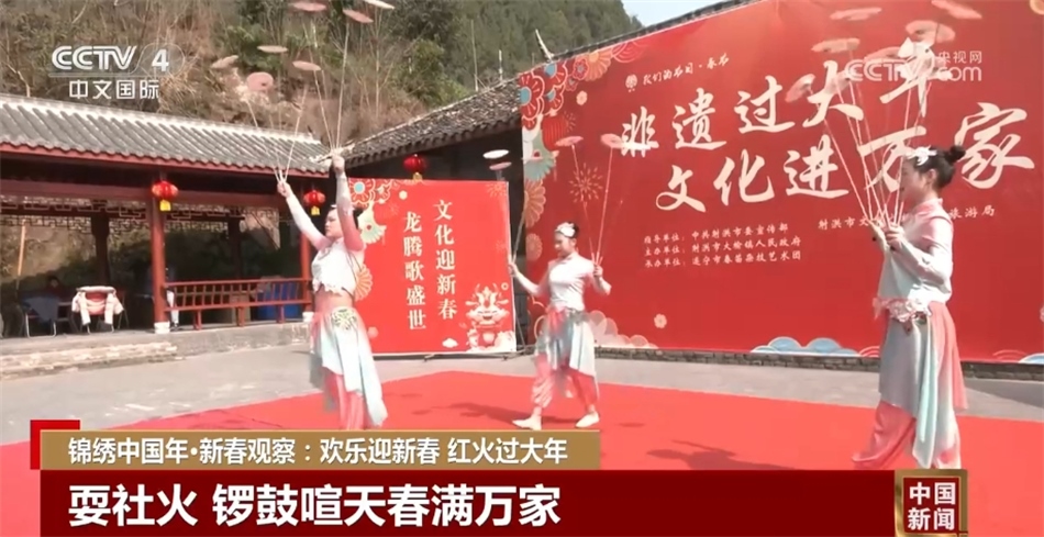 在陜西韓城,今年的社火表演格外火熱;在江西婺源,古老的民俗——甲路抬閣巡游引得游客蜂擁而至;在四川遂寧射洪,民眾在驚奇險絕的非遺雜技蓮宵舞、頂缸等表演中感受非遺濃濃的傳統(tǒng)年味。