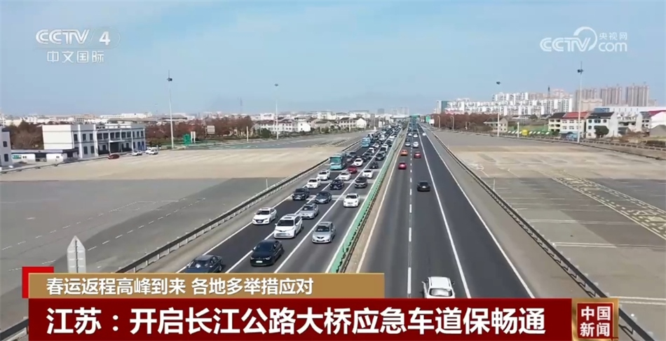 14日,江蘇重要的過江通道江陰長江公路大橋就迎來返程車流的第一個高峰,當(dāng)天車流量突破13.6萬輛。2月15日,江陰長江公路大橋的通行量繼續(xù)保持高位運行,為保證大橋及周邊高速公路的通暢,靖江市交警、路政、道路等聯(lián)合采取應(yīng)急措施,開啟橋區(qū)的應(yīng)急車道,提升大橋的通行能力,并在大流量緩行路段駐點布防,確保道路上發(fā)生突發(fā)事件時能及時進行處置。