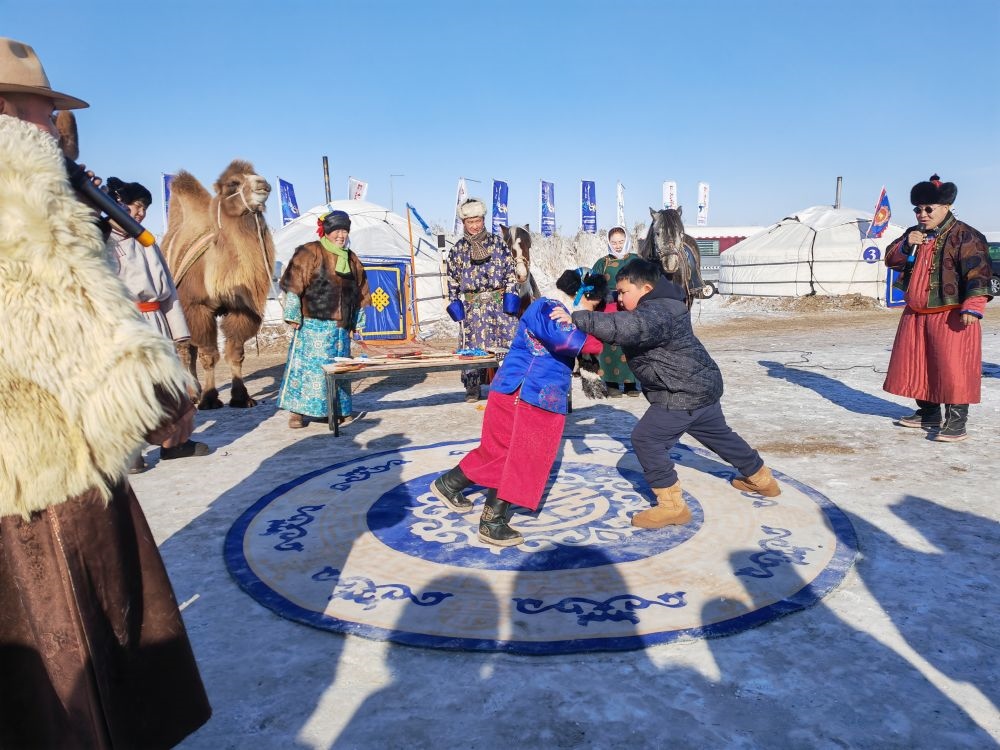 為迎接“十四冬”,呼倫貝爾推出了豐富多彩的文化活動和產(chǎn)品。陳巴爾虎旗的牧民巴圖蘇和與合伙人在莫爾格勒河景區(qū)推出“天天冰雪那達(dá)慕”活動,設(shè)雪地搏克、騎馬射箭、“冰地嘎拉哈”、駱駝爬犁等項目,讓游客沉浸式體驗蒙古族文化與傳統(tǒng)運動。首次嘗試雪地搏克的河北固安游客張瑞堂,與一位蒙古族少年友好競技,他的姐姐則用手機記錄下了這段珍貴的經(jīng)歷。