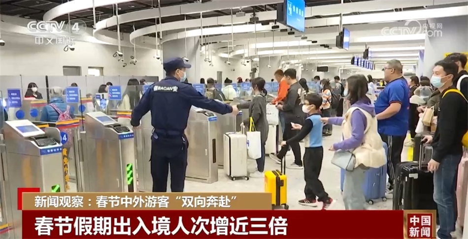 春節(jié)前,中國對多個(gè)國家單方面免簽證,今年春節(jié)出境游、入境游訂單均超過2019年同期。其中,出境游創(chuàng)下近4年峰值,預(yù)訂量同比增長近10倍。全國邊檢機(jī)關(guān)共驗(yàn)放中外出入境人員1351.7萬人次,較2023年春節(jié)同期增長2.8倍,恢復(fù)至2019年春節(jié)同期的近九成。