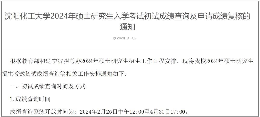 沈陽(yáng)化工大學(xué)考研初試成績(jī)