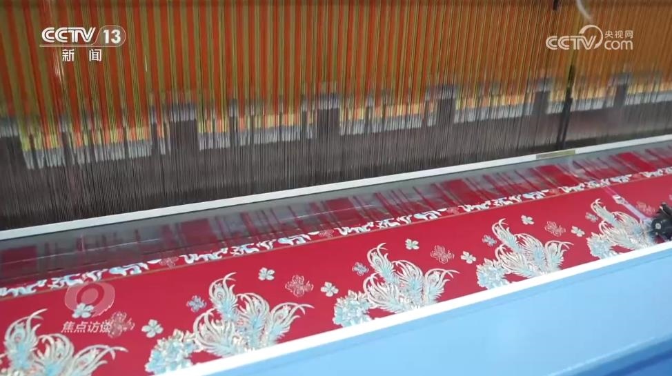 張明強(qiáng):“大提花的機(jī)器原來(lái)可以做窗簾,但同時(shí)也可以做馬面裙面料,也可以做服裝面料,就是同一臺(tái)機(jī)器可以做,所以我們這次轉(zhuǎn)型是不需要買(mǎi)機(jī)器的,它的成本就會(huì)比較低了?!?/p>