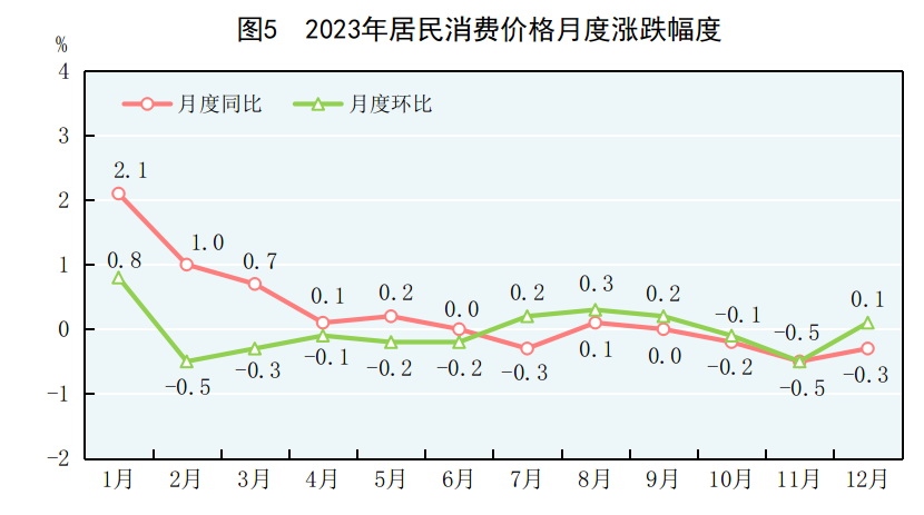 全年居民消費(fèi)價(jià)格比上年上漲0.2%。工業(yè)生產(chǎn)者出廠價(jià)格下降3.0%。工業(yè)生產(chǎn)者購進(jìn)價(jià)格下降3.6%。農(nóng)產(chǎn)品生產(chǎn)者價(jià)格[9]下降2.3%。12月份,70個(gè)大中城市中,新建商品住宅銷售價(jià)格同比上漲的城市個(gè)數(shù)為20個(gè),持平的為2個(gè),下降的為48個(gè);二手住宅銷售價(jià)格同比上漲的城市個(gè)數(shù)為1個(gè),下降的為69個(gè)。