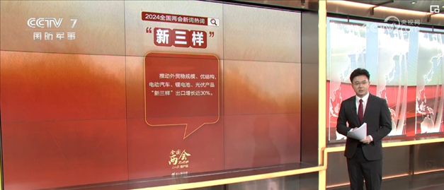 政府工作報告中提到,2023年新能源汽車產(chǎn)銷量占全國比重超過60%,“新三樣”出口增長近30%。在“部長通道”中,科技部部長陰和俊提到,新能源汽車、鋰電池、光伏組件“新三樣”,2023年出口增速喜人,為發(fā)展新質生產(chǎn)力夯實了基礎、注入了動力。