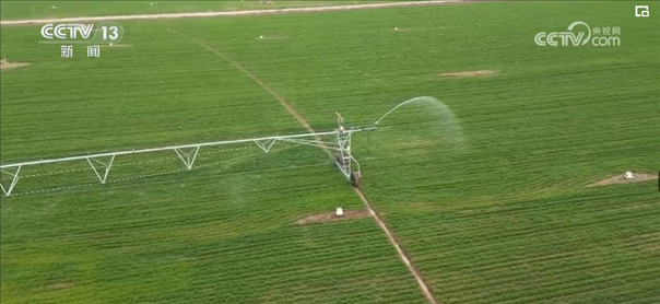 根據(jù)農(nóng)業(yè)專(zhuān)家的精準(zhǔn)測(cè)算和調(diào)度,園區(qū)工作人員啟動(dòng)了大型指針式噴灌機(jī)。
