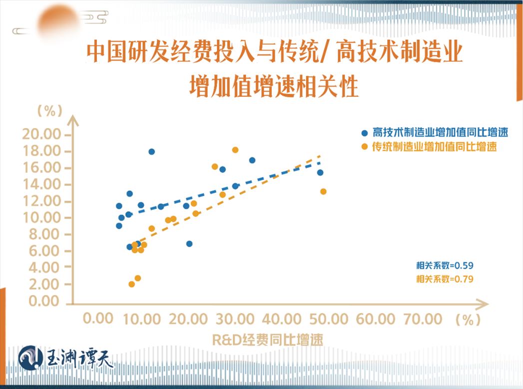 在中國(guó),對(duì)于傳統(tǒng)產(chǎn)業(yè)而言,研發(fā)經(jīng)費(fèi)投入對(duì)增長(zhǎng)的貢獻(xiàn),反而更容易顯現(xiàn)。