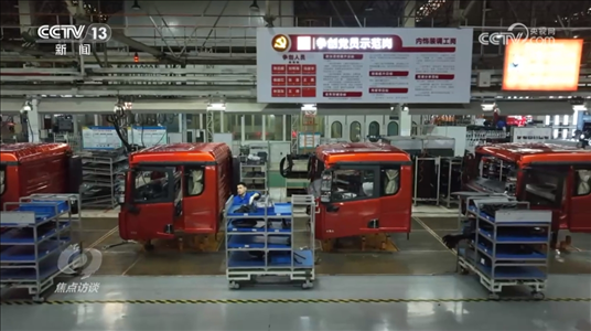 在西安高陵,剛投用一年多的新能源重卡總裝生產(chǎn)線,每4.8分鐘就有一輛重卡下線。在機(jī)械臂、傳送帶組成的智能產(chǎn)線上,各個零部件在不同的加工環(huán)節(jié)流轉(zhuǎn),而背后控制這一切的,是一條看不見的“數(shù)據(jù)流”。借助激光刻上的數(shù)字編碼,每一條鋼梁就有了自己專屬的“身份證”,它需要被如何切割、打孔、焊接,后臺程序都會按生產(chǎn)計(jì)劃進(jìn)行安排,而這一切,完全不需要人力干預(yù)。
