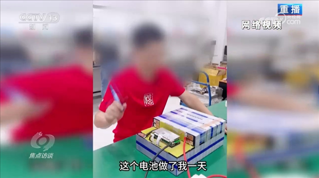 調(diào)查發(fā)現(xiàn),相同電量的原裝鋰電池通常要賣上千塊錢,而改裝電池便宜的只賣幾百塊,所以很多人會買改裝電池,但也埋下了事故隱患。改裝電池的電芯通常是從電動汽車淘汰下來的二手電芯,但是,黑作坊卻以舊充新、以次充好,安全防護(hù)更是嚴(yán)重缺失,根本達(dá)不到國家標(biāo)準(zhǔn)。但在短視頻平臺上,不少商家卻公開展示電池改裝過程以招攬生意。