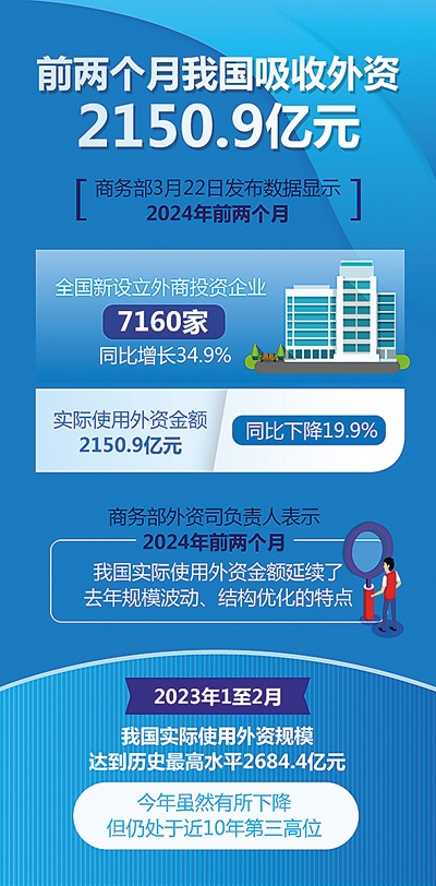商務(wù)部數(shù)據(jù)顯示,今年1-2月,中國(guó)新設(shè)外資企業(yè)數(shù)量達(dá)7160家,同比增長(zhǎng)34.9%。商務(wù)部外資司有關(guān)負(fù)責(zé)人表示,這一數(shù)字是近5年來(lái)的最高水平,顯示出跨國(guó)公司仍看好中國(guó)市場(chǎng)發(fā)展機(jī)遇,對(duì)華投資持續(xù)加碼。