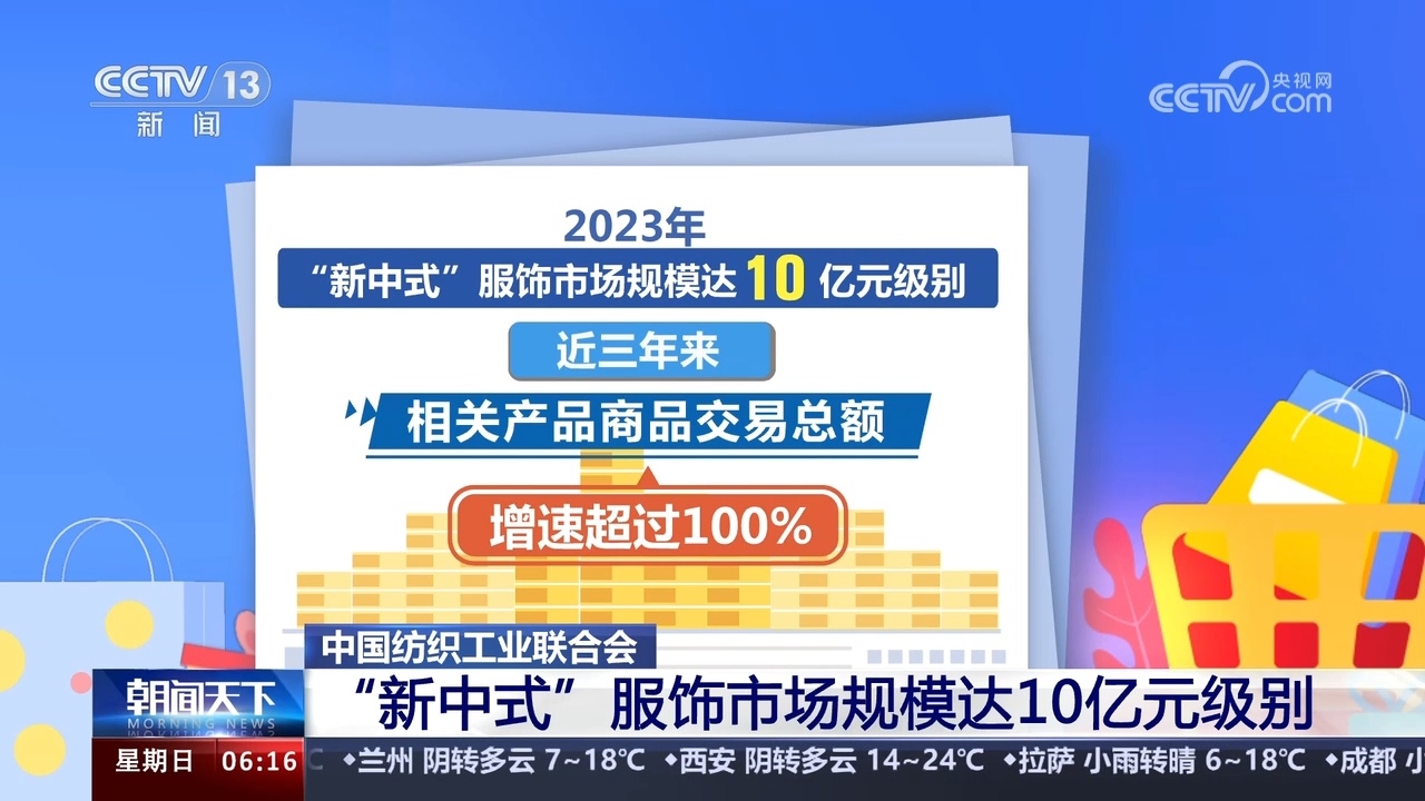 中國紡織工業(yè)聯(lián)合會數(shù)據(jù)顯示,2023年“新中式”服飾市場規(guī)模達10億元級別,近三年來,相關產品商品交易總額增速超過100%。今年1月以來,在互聯(lián)網(wǎng)銷售平臺上“新中式”“宋錦”的搜索量環(huán)比分別增長近6倍和近20倍。