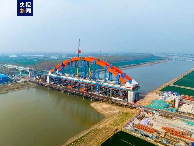 4月10日,濟(jì)濱高鐵全線首個(gè)系桿拱橋——濟(jì)商1號(hào)特大橋跨徒駭河144米系桿拱順利合龍,為下一步系桿拱橋梁施工、鋪軌奠定了堅(jiān)實(shí)基礎(chǔ)。