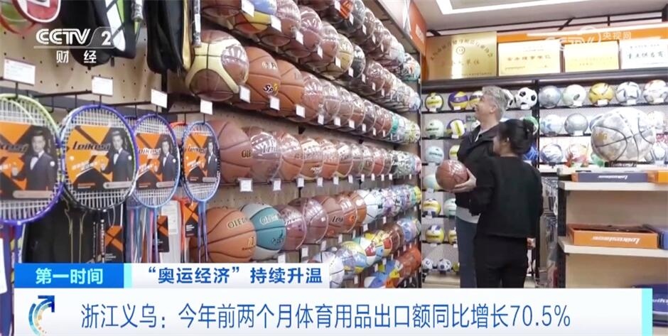 央視網(wǎng)消息:隨著巴黎奧運(yùn)會(huì)的臨近,“奧運(yùn)經(jīng)濟(jì)”也持續(xù)升溫,在浙江義烏國(guó)際商貿(mào)城,各種體育用品吸引了不少客商下單。我們來(lái)看記者的報(bào)道。